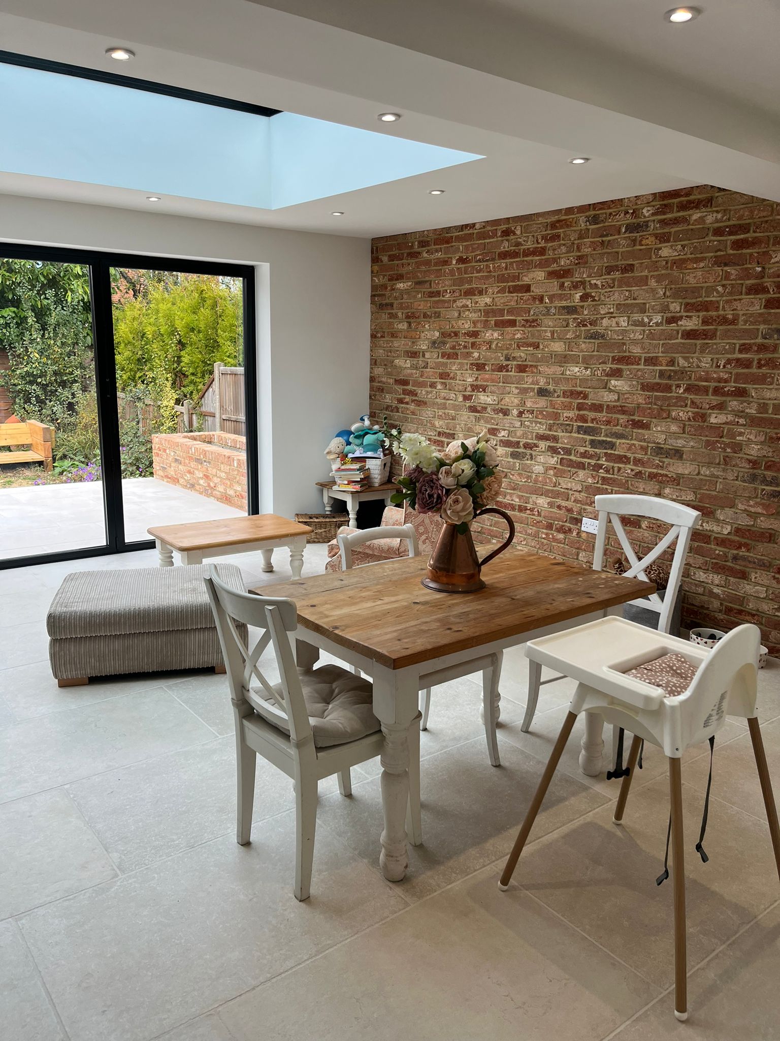 Expansive bi-folding doors and a striking roof light ensure the extension is bright and welcoming all year round, creating a home perfectly suited to modern family living.